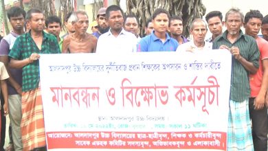 স্কুলের তহবিল তছরুপ করার অভিযোগে রংপুরের প্রধান শিক্ষকের বিচারের দাবিতে মানববন্ধন ও বিক্ষোভ ।