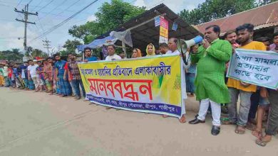 শ্রীপুরে মিথ্যা মামলা থেকে হয়রানির প্রতিবাদে এলাকাবাসীর মানববন্ধন