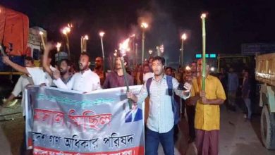 জ্বালানি তেলের মূল্য বৃদ্ধির প্রতিবাদে শেরপুরে মশাল মিছিল