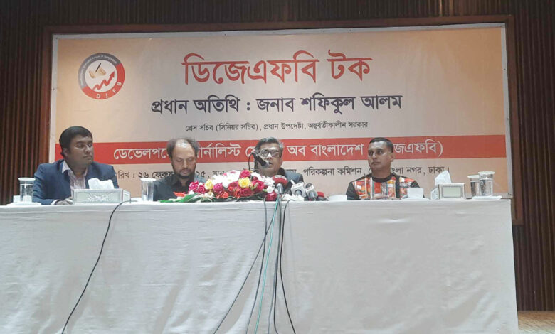 বুধবার (২৭ ফেব্রুয়ারি) রাজধানীর শেরেবাংলা নগরের এনইসি সম্মেলন কক্ষে ডেভেলপমেন্ট জার্নালিস্ট ফোরাম অব বাংলাদেশ (ডিজেএফবি) আয়োজিত ‘ডিজেএফবি টক’ অনুষ্ঠানে প্রধান অতিথির বক্তব্যে এসব কথা বলেন প্রেস সচিব।অনুষ্ঠানে সভাপতিত্ব করেন ডিজেএফবির সভাপতি হামিদ-উজ-জামান।