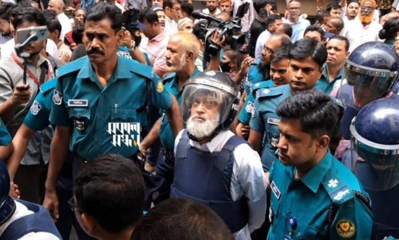 শুনানি শেষে তাকে এজলাস থেকে নামিয়ে হাজতখানার দিকে নেওয়ার সময় আবারও পুলিশের সঙ্গে বাগ্বিতণ্ডায় জড়িয়ে পড়েন তিনি। পরে ধীরে ধীরে শান্ত হলে তাকে নিরাপত্তা বেষ্টনীর মধ্যে হাজতখানায় নেওয়া হয়। এ সময় তার মাথায় হেলমেট, বুকে বুলেটপ্রুফ জ্যাকেট এবং দুই হাত পিছমোড়া করে বাঁধা ছিল।