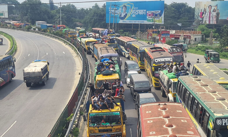 ঢাকা-টাঙ্গাইল-যমুনা সেতু মহাসড়কের সেতু এলাকা থেকে করটিয়া করাতিপাড়া বাইপাস পর্যন্ত যানজট অব্যাহত রয়েছে। অতিরিক্ত গাড়ির চাপ এবং সেতুর ওপর গাড়ি বিকল হওয়ায় বুধবার (৪ জুন) ভোর ৪টা থেকে শুরু হওয়া এই যানজট শুক্রবার দুপুর পর্যন্ত চলতে থাকে। এলেঙ্গা বাস স্টেশন, রাবনা বাইপাস এবং আশেকপুর বাইপাসে মানুষের ঢল দেখা গেছে। মহাসড়কে যাত্রীবাহী বাসের তুলনায় ট্রাক ও পিকআপের সংখ্যা বেশি। গণপরিবহন সংকট ও অতিরিক্ত ভাড়ার কারণে অনেকেই জীবনের ঝুঁকি নিয়ে খোলা ট্রাক-পিকআপ ও বাসের ছাদে চলাচল করছেন।