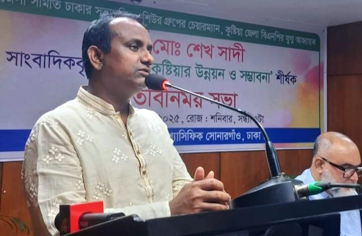 কুষ্টিয়ার উন্নয়ন ও সম্ভাবনা নিয়ে সাংবাদিকদের সঙ্গে মতবিনিময় সভায় নিজেদের অবস্থান তুলে ধরেছেন কুষ্টিয়া জেলা বিএনপির যুগ্ম আহ্বায়ক এবং এশিউর গ্রুপের চেয়ারম্যান মো. শেখ সাদী।