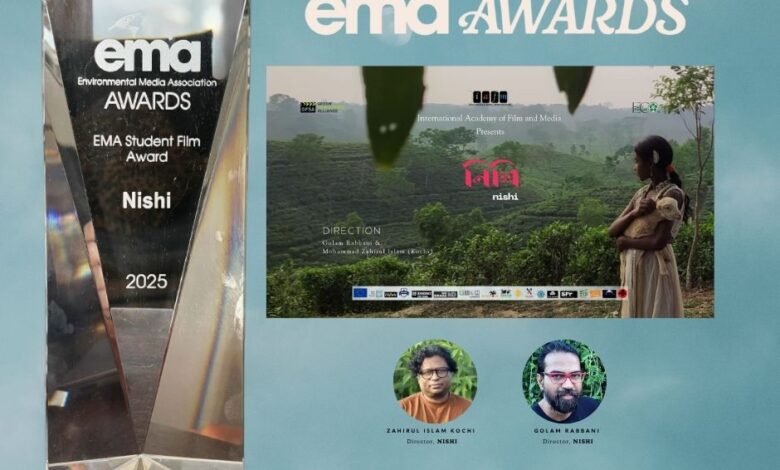 লস অ্যাঞ্জেলেসের ঐতিহ্যবাহী র্যাডফোর্ড স্টুডিও সেন্টার-এ গত শনিবার অনুষ্ঠিত ৩৫তম এনভায়রনমেন্টাল মিডিয়া অ্যাসোসিয়েশন (ইএমএ) অ্যাওয়ার্ডস ২০২৫-এ বাংলাদেশের নির্মিত পরিবেশভিত্তিক স্বল্পদৈর্ঘ্য চলচ্চিত্র “নিশি” অর্জন করেছে সেরা ছাত্র চলচ্চিত্র (Best Student Film) পুরস্কার।