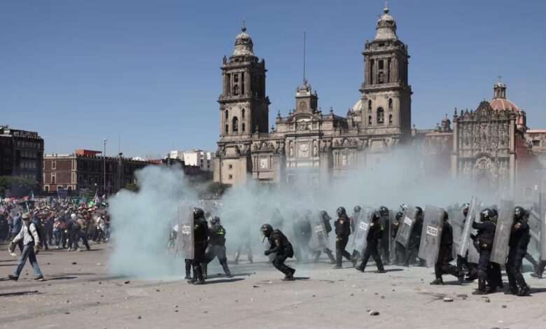 মেক্সিকো সিটির নিরাপত্তা প্রধান পাবলো ভাজকুয়েজ সাংবাদিকদের বলেন, একদল ব্যক্তি সহিংসতা শুরু না করা পর্যন্ত প্রায় কয়েক ঘণ্টা ধরে চলা এই সমাবেশ শান্তিপূর্ণভাবে এগিয়ে যাচ্ছিল।