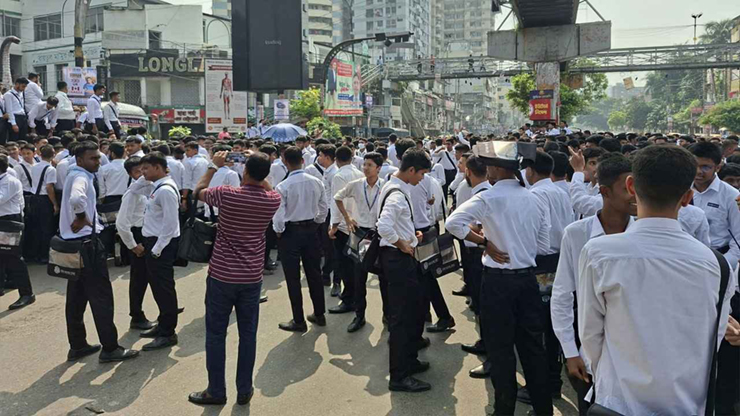 প্রস্তাবিত ও বাস্তবায়নাধীন ‘ঢাকা সেন্ট্রাল ইউনিভার্সিটি’ এর স্কুলিং মডেল বাতিলের দাবিতে সায়েন্সল্যাব মোড় অবরোধ করেছেন ঢাকা কলেজের উচ্চমাধ্যমিক শ্রেণির শিক্ষার্থীরা। সোমবার (১ ডিসেম্বর) সকাল সাড়ে দশটার দিকে কলেজ প্রাঙ্গণ থেকে মিছিল নিয়ে শতাধিক শিক্ষার্থী সায়েন্সল্যাব মোড়ে অবস্থান নেন। এতে নিউমার্কেট এলাকার মিরপুর সড়কে যানচলাচ বন্ধ হয়ে যায়।